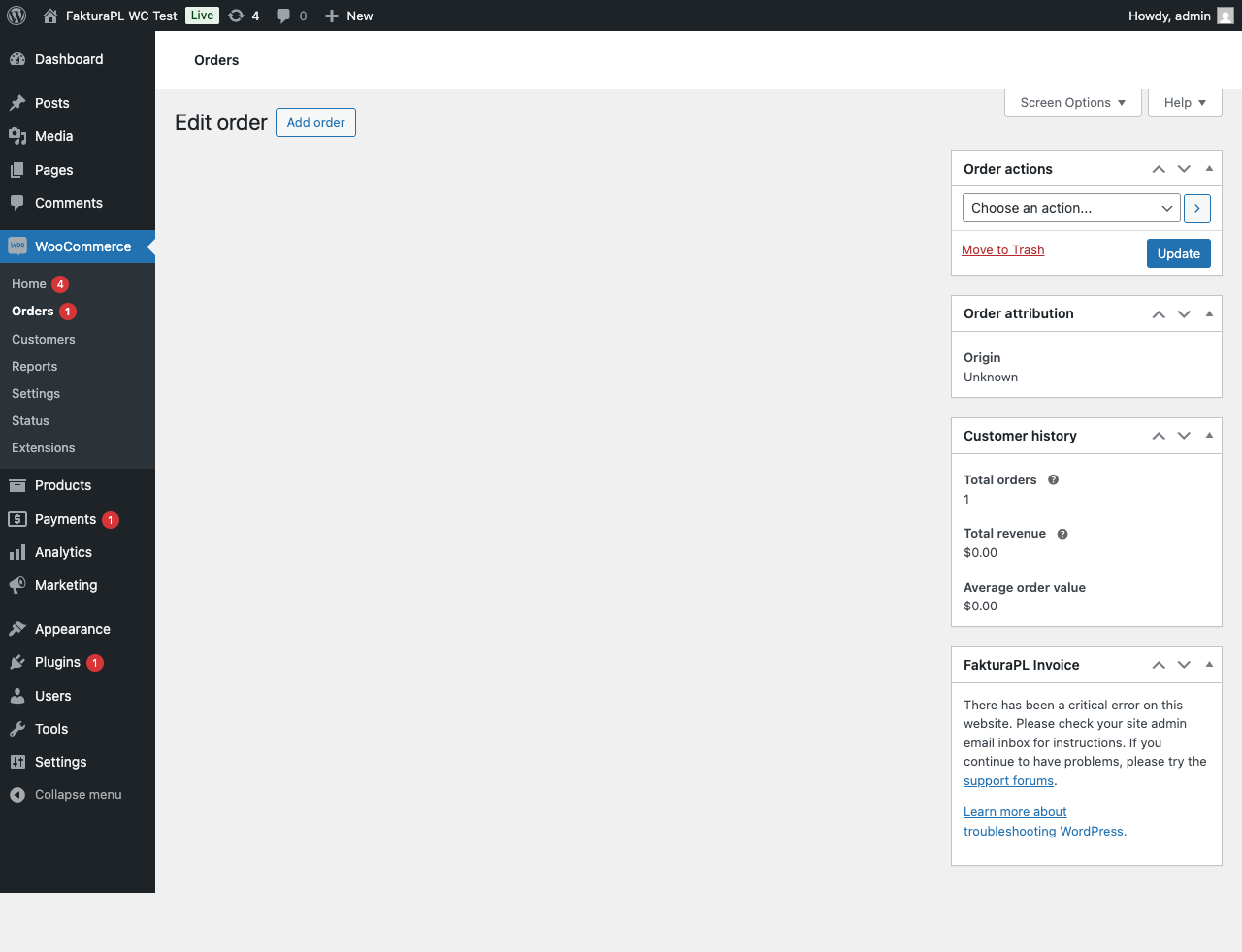 - The invoice was deleted directly in Fakturownia (avoid deleting invoices that were generated by the plugin)
